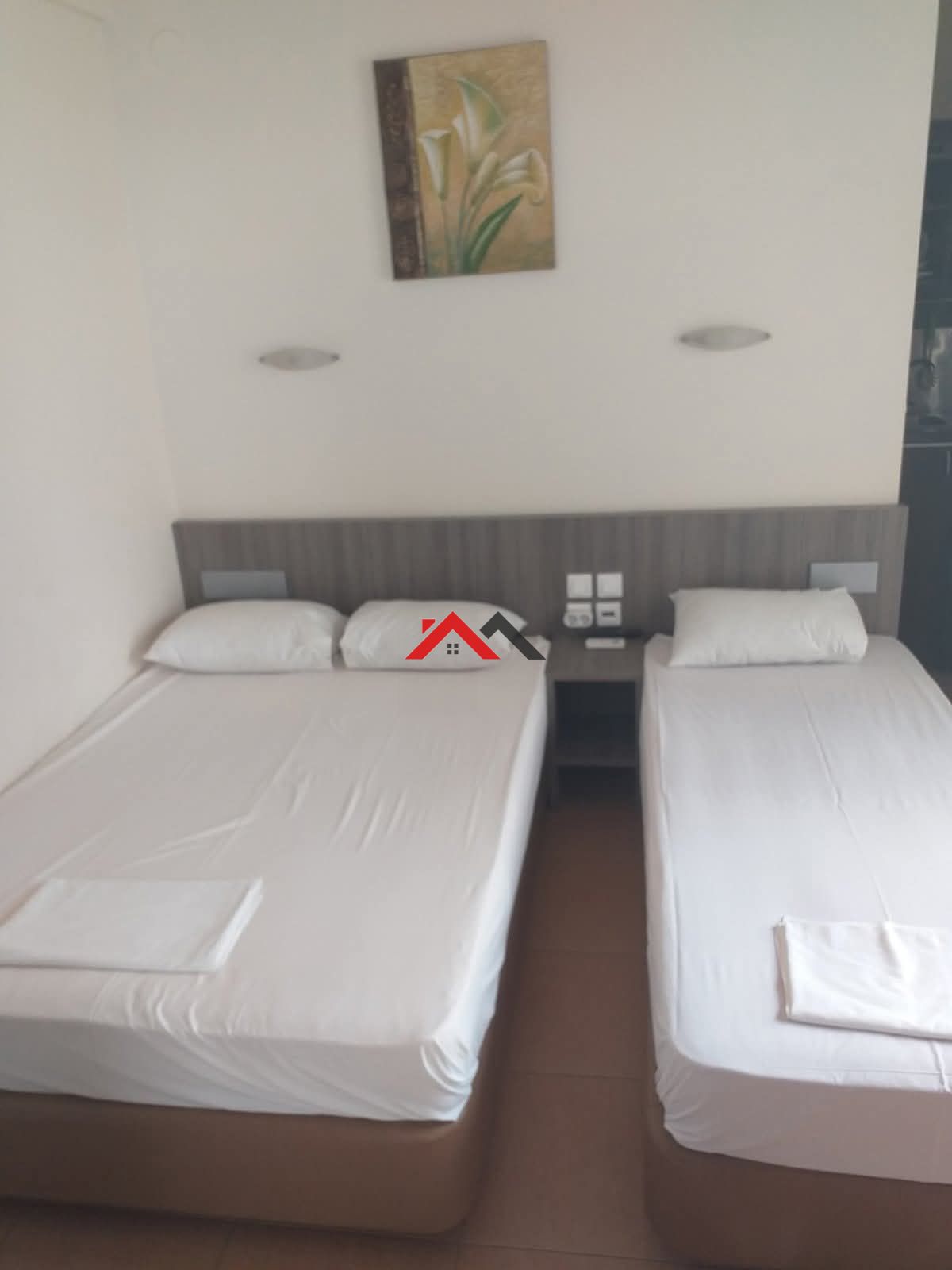 Είναι διαρρυθμισμένο σε 3 επίπεδα με εσωτερική σκάλα. Αποτελείται από 3 στούντιο με ντουλάπες και 3 μπάνια. Επιπλέον διαθέτει μεγάλες βεράντα.δυο μεγάλα μαγαζία μισθωμένα .